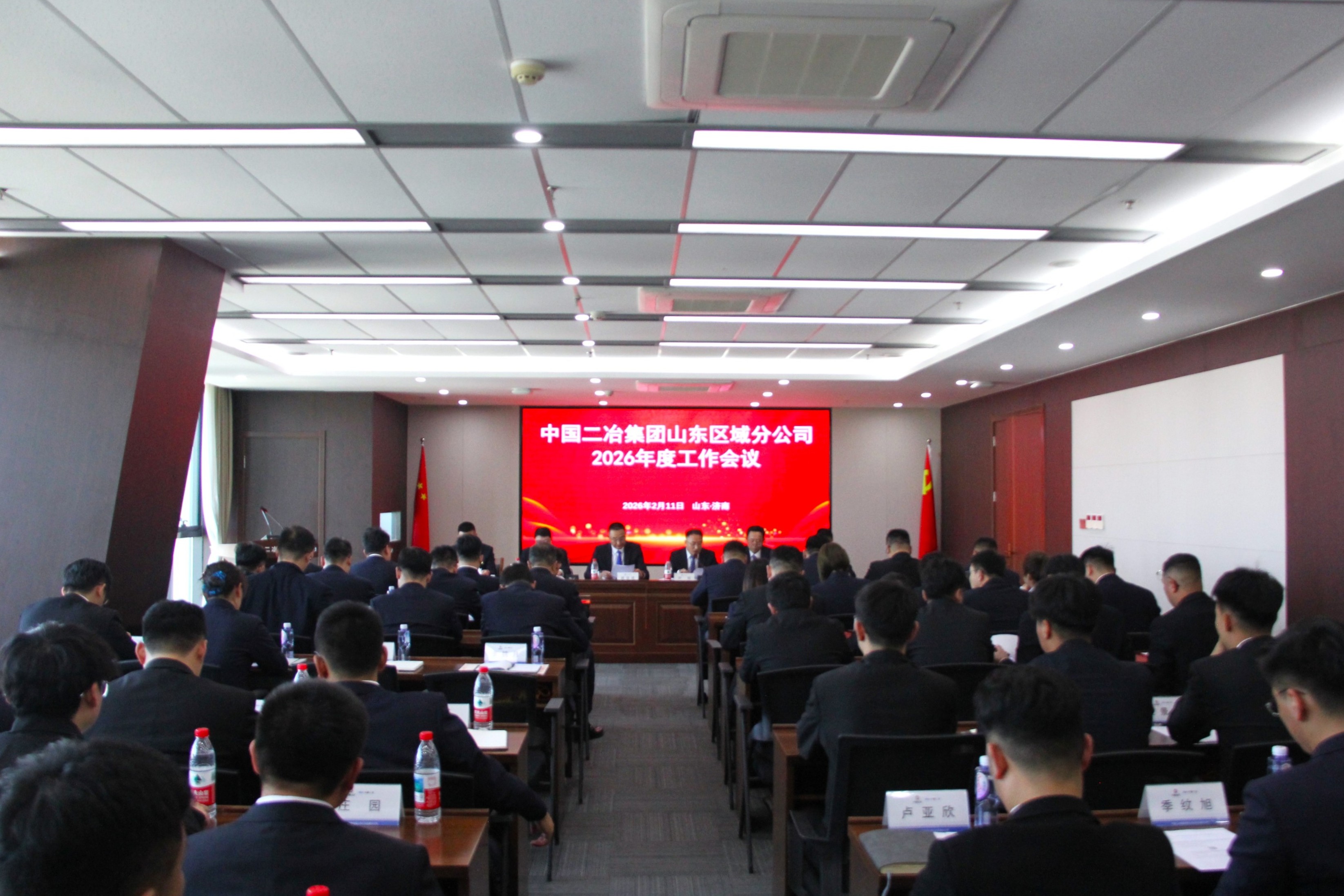 2月11日,山東分公司2026年度工作會議在濟南召開,會議深刻學習貫徹黨的二十大與黨的二十屆四中全會精神,傳達落實中國五礦、中國中冶、中國二冶年度工作會議精神以及各項決策部署,總結2025年主要工作,部署2026年重點任務。分公司總經理郝寶成作工作報告;黨委副書記、紀委書記尹旭主持會議并傳達上級工作會議精神;總工程師陳曦宣讀先進表彰決定;總會計師葉賢斌宣讀考務獎勵決定。