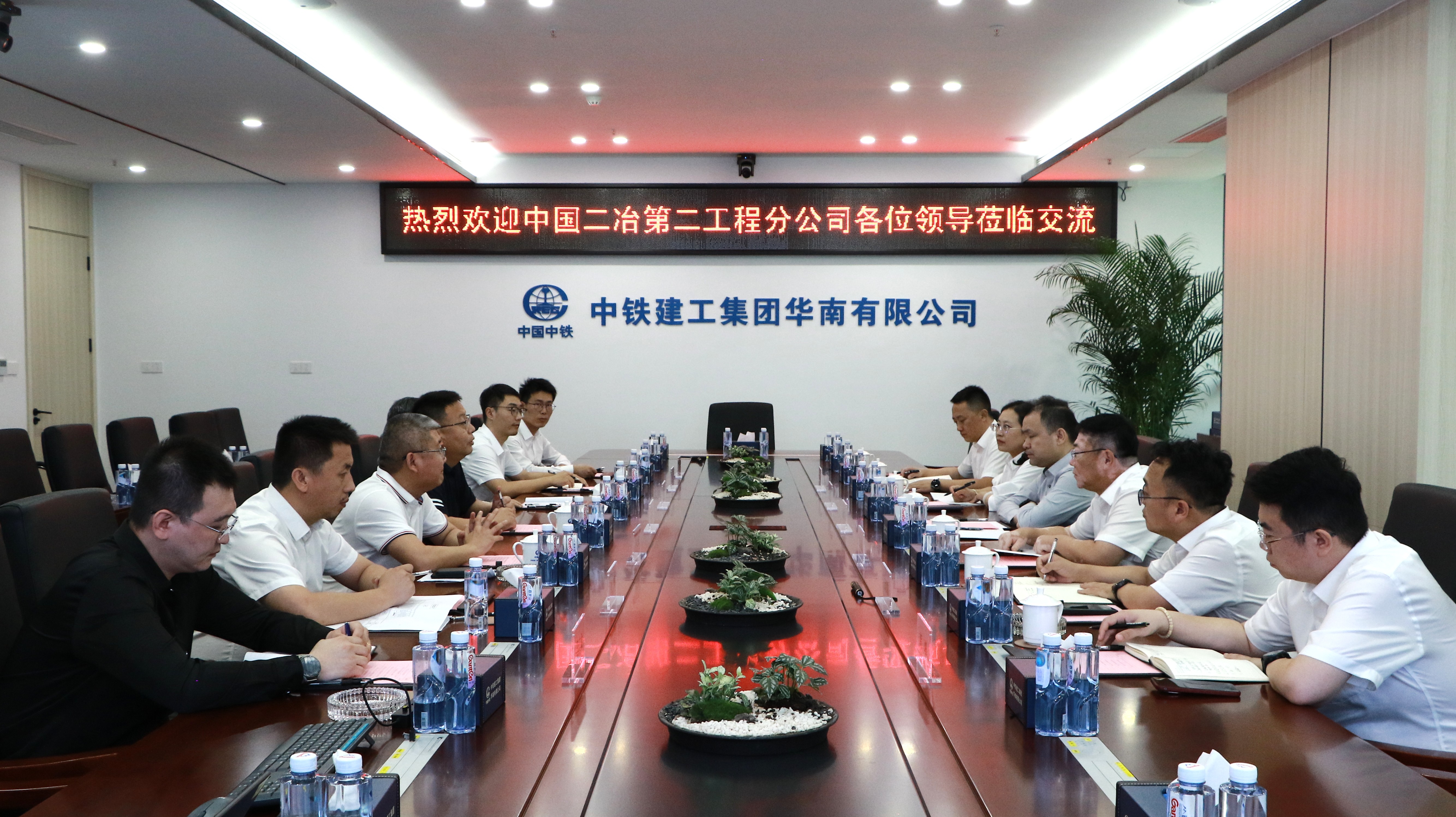 中鐵建工華南有限公司總經(jīng)理許光鋒、副總監(jiān)王世明、企業(yè)管理部部長葉輝、物資設(shè)備部部長馬云龍、經(jīng)營開發(fā)部部長魯垚、辦公室主任李大強;中國二冶二公司張小利、劉曉靜、云湖霞等相關(guān)人員陪同會見。