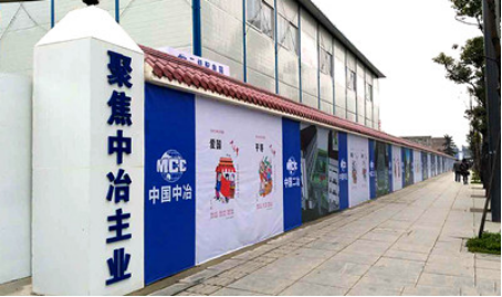 順著茶店子橫街一路走向施工現(xiàn)場(chǎng),首先映入眼簾的是五百多米的施工外圍墻,圍墻上中冶文化與中國(guó)二冶集團(tuán)簡(jiǎn)介、項(xiàng)目管理體系、業(yè)務(wù)體系、企業(yè)資質(zhì)和業(yè)績(jī)等內(nèi)容互相交替,同時(shí)融入了社會(huì)主義核心價(jià)值觀和項(xiàng)目效果圖,墻頭上覆蓋著棕紅色的琉璃瓦,整個(gè)圍墻既規(guī)范整齊,又古樸典雅,做到了成都古城風(fēng)韻、新二十中學(xué)民國(guó)風(fēng)格和中國(guó)二冶集團(tuán)企業(yè)文化的完美結(jié)合,充分展現(xiàn)了中國(guó)二冶集團(tuán)作為央企的社會(huì)責(zé)任,成為成都街頭一道獨(dú)特而又靚麗的風(fēng)景,常引得路人駐足觀看。