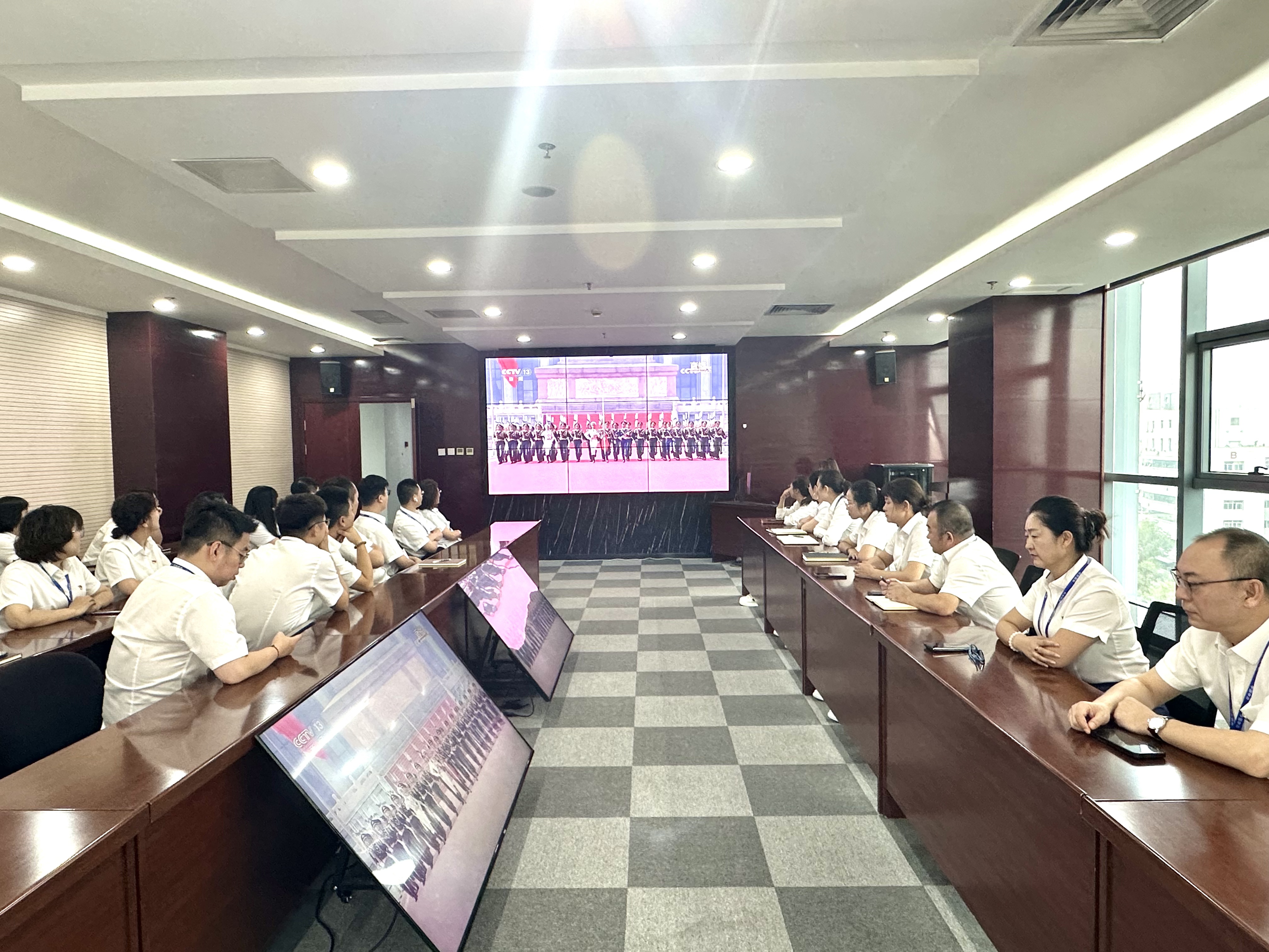 觀看過程中,全體職工始終保持肅穆姿態,目光緊緊聚焦屏幕,全神貫注沉浸在儀式的莊重氛圍里。大家認真聆聽習近平總書記發表的重要講話,目光緊緊追隨閱兵式的每一個環節——受閱官兵邁著鏗鏘有力的步伐,以昂揚向上的風貌展現國威軍威;先進精良的國防裝備依次亮相,生動呈現國家現代化建設的輝煌成就與綜合國力的飛速提升。威武的受閱方陣、尖端的裝備展示、高昂的民族士氣,不僅彰顯出我國日益強大的國防實力與堅韌不屈的民族精神風貌,更向世界傳遞出中國維護和平穩定、推動共同發展的堅定決心。