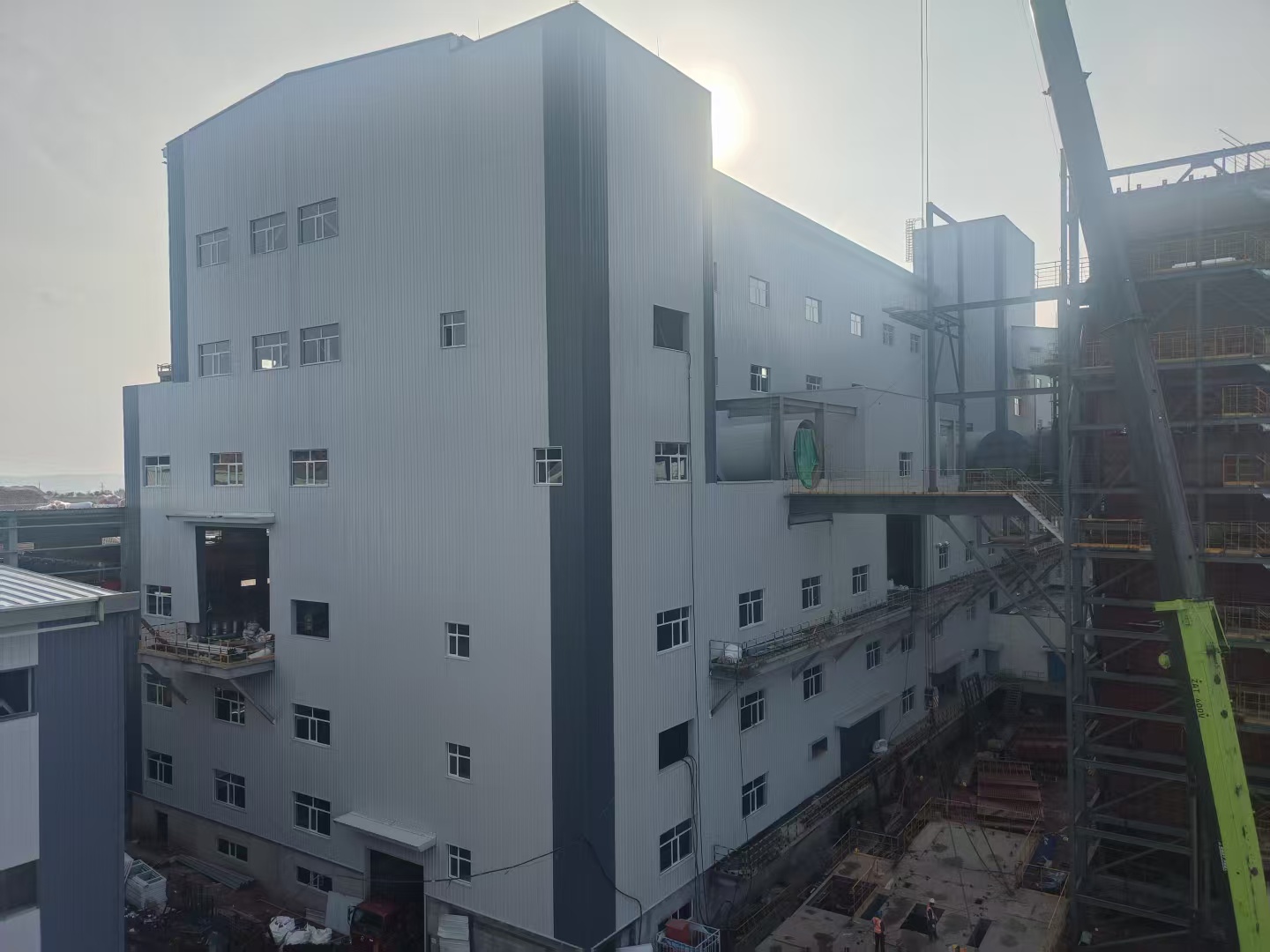 匯能硅鋁項目緊扣國家“雙碳”目標,將綠色理念融入發(fā)展實踐,持續(xù)探索以生態(tài)“含綠量”撬動發(fā)展“含金量”。其中,礦熱還原工程建筑面積4891平方米,長146米,寬33.5米,高45米,六層鋼結構,是本項目最大的主廠房。施工過程中,針對礦熱還原工程施工戰(zhàn)線長、混凝土澆筑體量大、施工工藝復雜等攔路虎,項目部團隊提前優(yōu)化施工組織設計和施工方案,強化質量巡檢、材料進場檢驗、安全每日監(jiān)管頻率,通過分區(qū)突擊、“土建+專業(yè)”工序有效銜接、增派專業(yè)隊伍、實施進度日考核等舉措,集中優(yōu)勢資源攻堅推進,確保礦熱還原基礎在26天內(nèi)完成,主體結構177天完成,跑出施工加速度。在此基礎上,項目部搶抓黃金施工期,節(jié)假日不停步,提前完成二次維護、裝飾裝修等關鍵節(jié)點,土建工程就此全面完成。