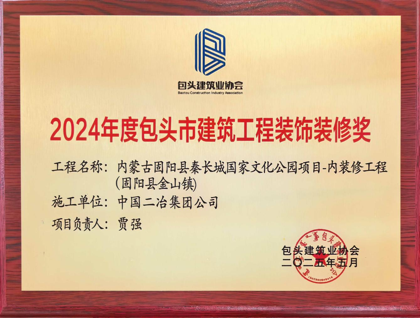近日,包頭市建筑業協會公布獲獎名單,中國二冶承建的內蒙古通威綠色基材有限公司風光耦合綠電制硅一體化項目、內蒙古石拐區風電裝備制造產業園標準化廠房項目榮獲包頭市“鋼結構金獎”;內蒙古固陽縣秦長城國家文化公園項目榮獲2024年度包頭市建筑工程“裝飾裝修獎”。