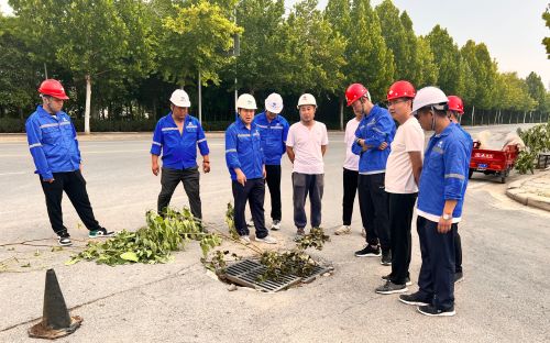 發現此問題后,項目經理盧晨帶領項目部管理人員立即到現場察看情況,并且及時上報建設單位,同時聯系溝通市政管養人員,并與施工隊實地查看堵塞原因。因附近村莊建設時間較早,雨水管、雨水井年久失修,降雨時部分淤泥、砂石和雜草樹葉隨水流沖入管道等,種種原因導致雨水道、雨水井雜物淤積,排水能力下降。查明原因后,許昌項目部立即研究解決方案,明確施工流程,調集專業疏通人員啟動設備車輛,隨即開始維修,經過一周左右的清污疏通、清淤,堵塞雨水管線全部恢復暢通,共計清理雨水井24個,雨水管11個(長約2000米),徹底解決了村民一大難題。