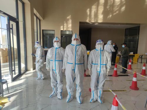 11月4日,項(xiàng)目部派出三名具有核酸檢測(cè)經(jīng)驗(yàn)的志愿者,配合九原區(qū)管委會(huì)進(jìn)行核酸檢測(cè)排查工作。凌晨四點(diǎn),三名志愿者頂著寒風(fēng)出發(fā),“有需要,我們就在。”在接到參與志愿服務(wù)的消息后,已經(jīng)回家的志愿者們紛紛從家趕到項(xiàng)目部與大家集合,只為第二天提早趕到現(xiàn)場(chǎng)做好相關(guān)準(zhǔn)備工作。在現(xiàn)場(chǎng),志愿者們搭帳篷、設(shè)立采樣點(diǎn)、做好人員、物資、場(chǎng)地等各項(xiàng)統(tǒng)籌調(diào)配工作,并在檢測(cè)開(kāi)始前進(jìn)行最后的查漏補(bǔ)缺,反復(fù)向各個(gè)點(diǎn)位的工作人員落實(shí)具體任務(wù),將各項(xiàng)細(xì)節(jié)工作做到位、做扎實(shí),以防突發(fā)事件發(fā)生。隨后,居民們陸續(xù)趕來(lái)排隊(duì)做核酸檢測(cè)。面對(duì)天氣寒冷、參檢人數(shù)多的困難,志愿者們連續(xù)工作6個(gè)小時(shí)不停歇,充分展現(xiàn)出央企員工的責(zé)任與擔(dān)當(dāng)。