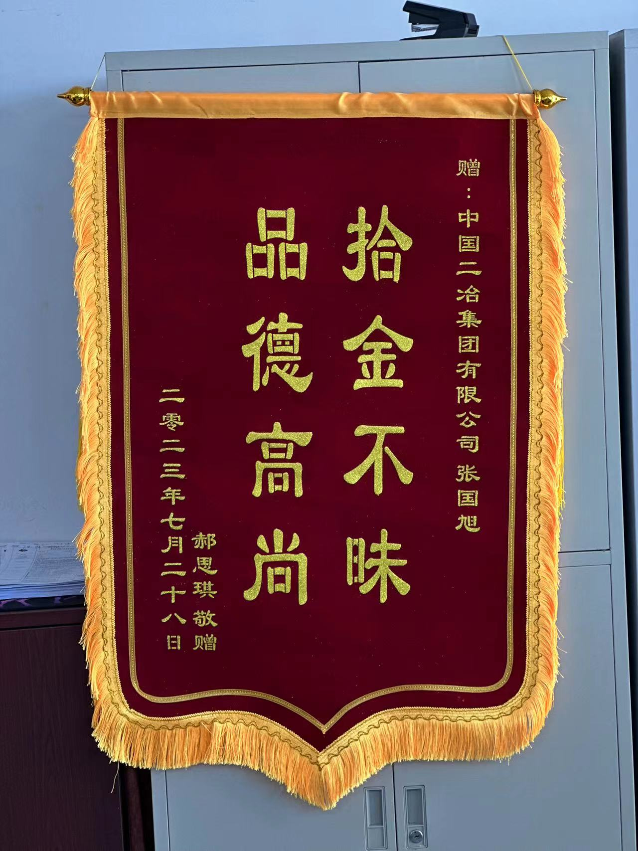 7月28日,中國(guó)二冶收到一份“意外”的表?yè)P(yáng)信和一面錦旗。信中用樸實(shí)的言語(yǔ)對(duì)中國(guó)二冶新入職大學(xué)生張國(guó)旭拾金不昧的精神表示了贊揚(yáng)與感謝。