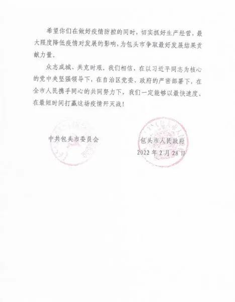 2月23日,中國二冶向包頭市人民政府遞交了《關于全力參與我市抗疫阻擊戰(zhàn)的請愿書》并表示,作為駐包建筑央企,中國二冶在做好自身防疫,統(tǒng)籌生產(chǎn)經(jīng)營,保持經(jīng)濟穩(wěn)增長的同時,誠愿積極響應市委市政府號召,勇?lián)姑瑳_鋒在前,主動參與到各項疫情防控重點工作中。如市政府有緊急抗疫任務,或應急設施建設任務。中國二冶將第一時間,迅速行動,調(diào)集駐包單位各方面資源力量,充分發(fā)揮建筑企業(yè)的特點和優(yōu)勢,全力以赴為我市疫情防控貢獻央企力量。